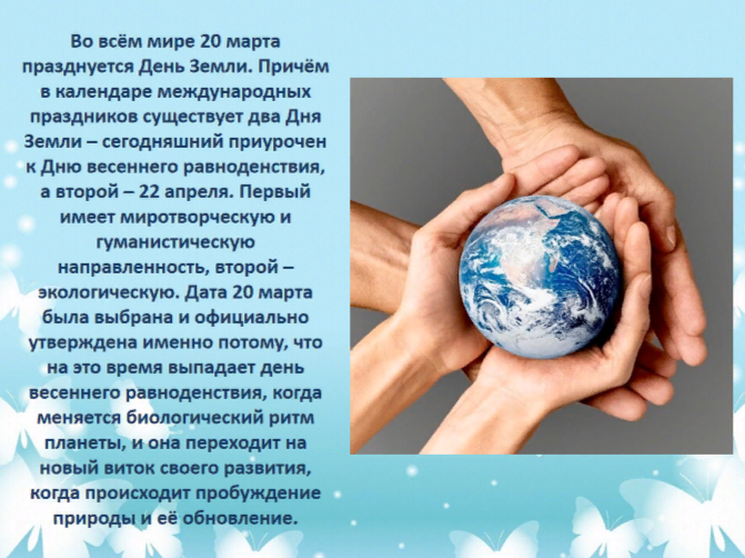 20.03.2024Во всём мире 20 марта празднуется День Земли.