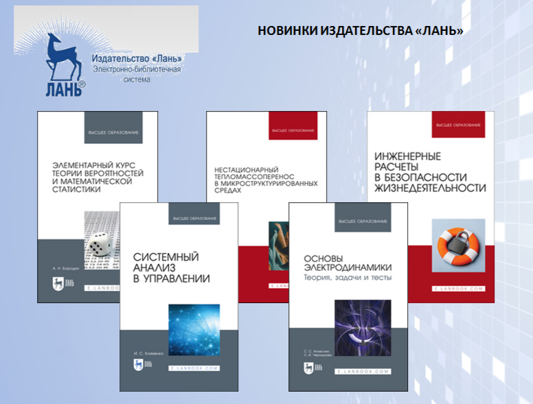 20.03.2024"Пульс науки" приглашает на вебинар "Рецензирование как основной этап публикационного процесса". 11.03.2024Новинки издательства "Лань".