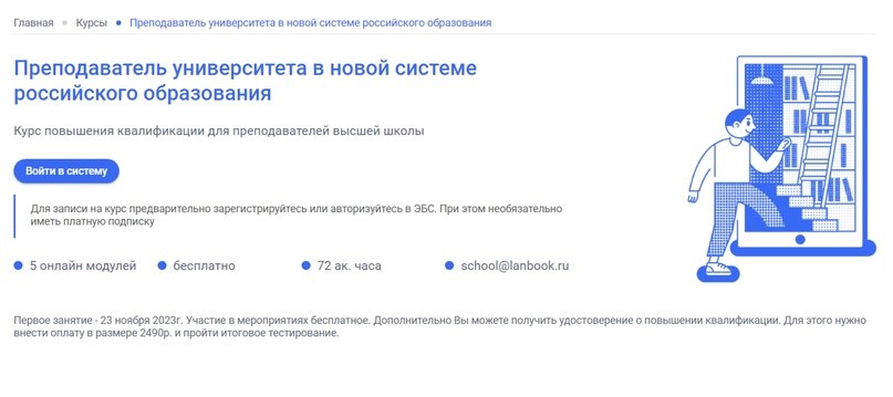 17.11.2023Школа Лани" приглашает пройти курс повышения квалификации для преподавателей высшей школы "Преподаватель университета в новой системе российского образования"