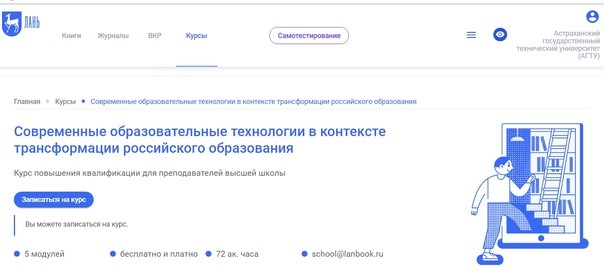 Для записи на курс предварительно зарегистрируйтесь или авторизуйтесь в ЭБС. При этом необязательно иметь платную подписку. Адрес: https://e.lanbook.com/courses/191