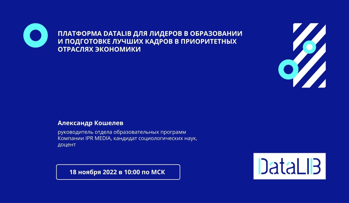 В 10:00 (МСК) «Платформа DATALIB.RU для лидеров в образовании и подготовке лучших кадров в приоритетных отраслях экономики».