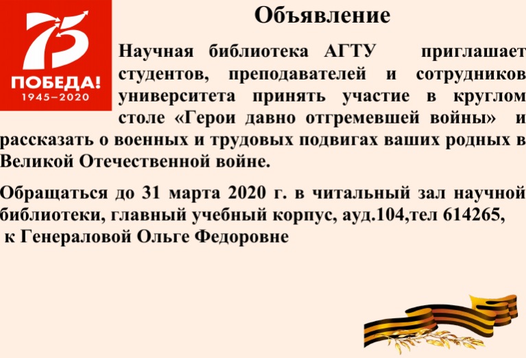 сотрудников университета принять участие в круглом столе «Герои давно отгремевшей войны»