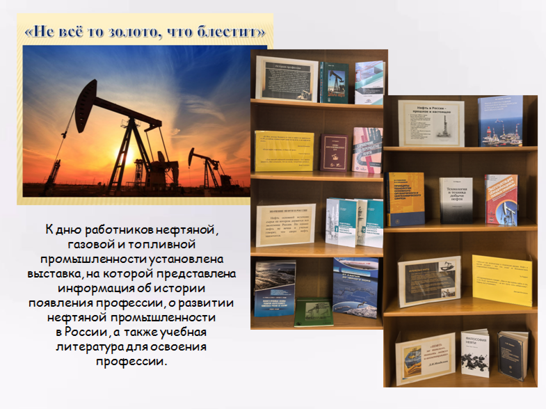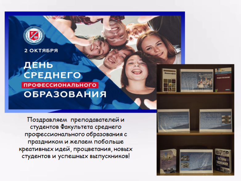 06.09.2024В отделе учебной литературы научной библиотеки (4 учебный корпус, 203 ауд.) представлены выставки: «Не всё то золото, что блестит», «Будь грамотным, будь успешным!» и выставка к дню среднего профессионального образования.